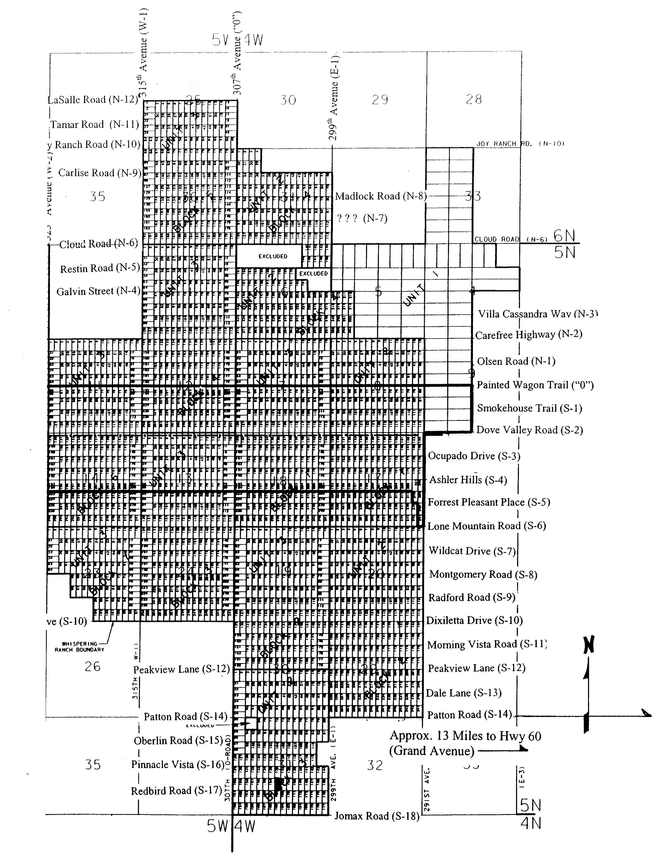 Click here for a set of instructions how to use these Whispering Ranch maps, and to coordinate road names with compass points once you are in the subdivision.